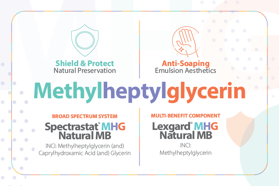 Methylheptylglycerin (Lexgard® MHG Natural MB) is an novel, patent-pending chemistry with two distinct benefits:
