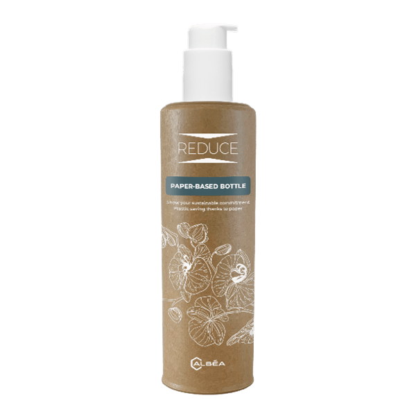 Available in kraft and white, the bottle contains a minimum of 50% FSC-certified paper content (without the cap or the pump), the Albéa Tubes unique paper-based web structure contributes to reducing plastic content, lowering the carbon footprint of its packaging for a better environmental impact.