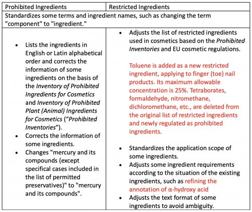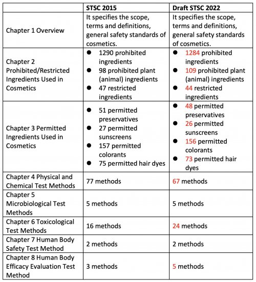 Parallèlement au projet STSC 2022, a également été publié (pour commentaires) la Revision Explanation and Revision Comparison Table of Safety and Technical Standards for Cosmetics 2022}} (Draft for Comments).