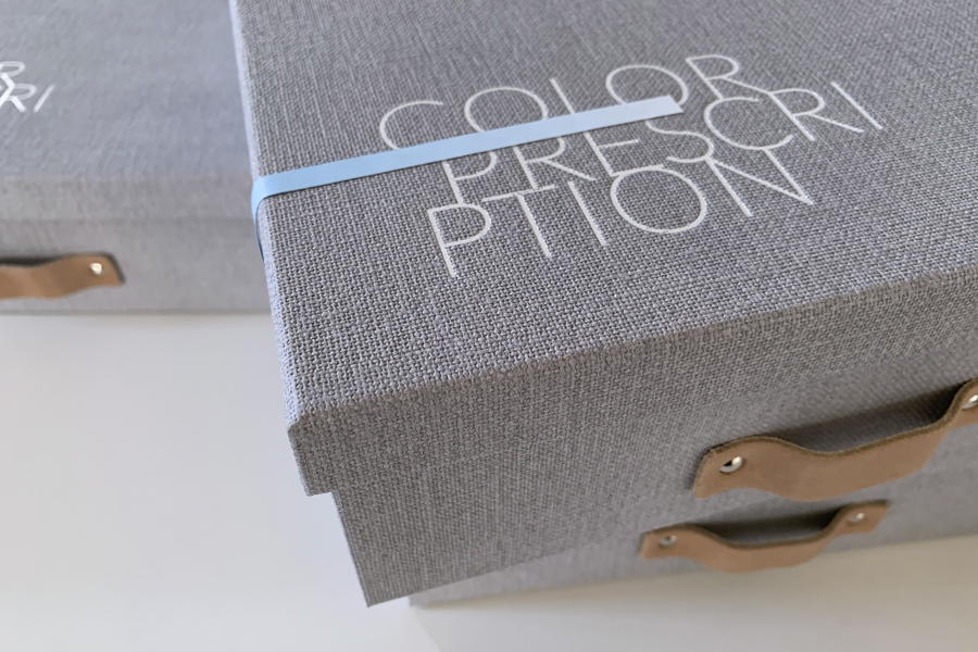 The zero-digital concept of Colorprescription is based on the subjective choices of the two colourists, expressed each year in ten limited-edition boxes of sensory inspiration, each of which is dedicated to a colour, available in different shades and on different substrates.