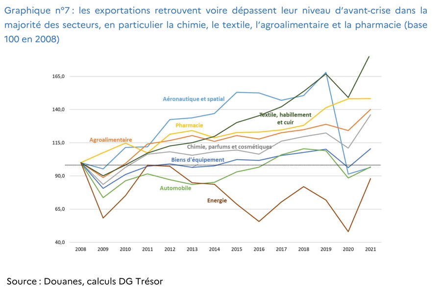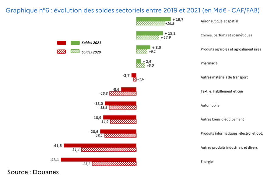 Si les importations ont également augmenté en 2021 (+24%), le solde commercial dépasse toutefois son niveau exceptionnel atteint en 2019 et l’industrie des cosmétiques se place - avec 12,9 milliards d’euros d’excédents commerciaux - derrière l’aéronautique (30,8 milliards d’euros) et les vins et spiritueux (14,6 milliards d’euros), dans le top 3 des premiers contributeurs au solde positif du commerce extérieur de la France.