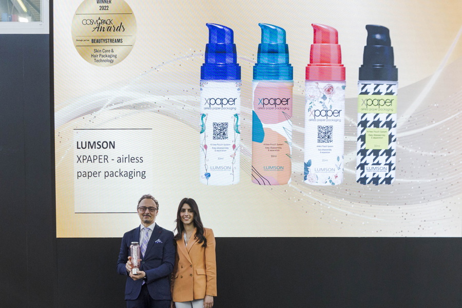 Awarded at the end of 2021 by the Italian Association for Design (ADI, Associazione per il Designo Industriale), Lumson’s paper airless dispenser offers a lighter and greener alternative to plastic, glass or aluminium.