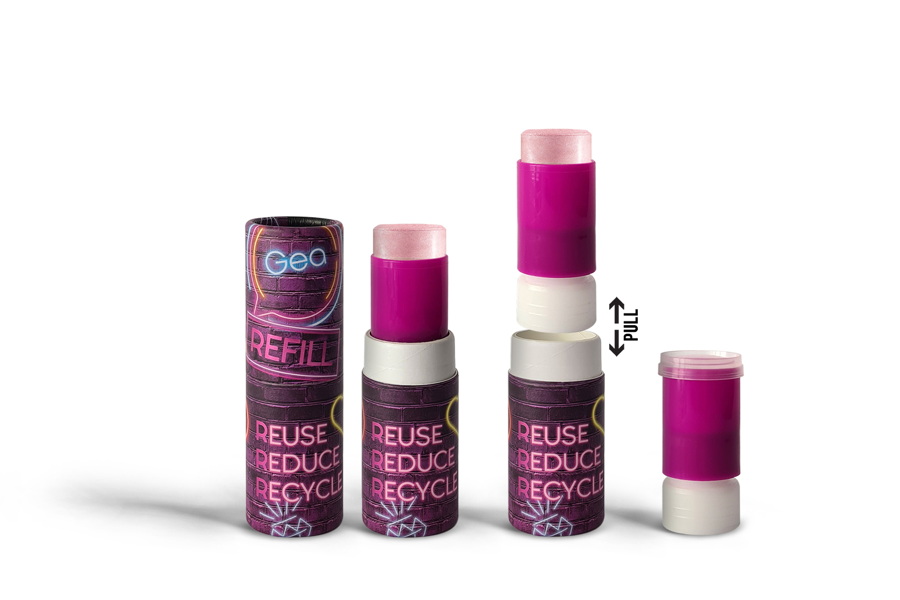 Mktg Industry continues to bet on paperboard with refillable packaging solutions for sticks and lipsticks.