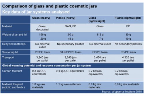 The main conclusion of such results is that while lightweight plastic and glass cosmetic jars have similar environmental impacts, it is highly ineffective - in terms of sustainability - to produce heavyweight plastic jars that imitate the aesthetic characteristics of glass.