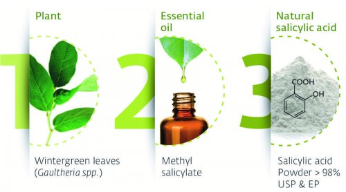 Its effectiveness is at the height of its naturalness since Neosalyl™ is obtained from Wintergreen leaves, rich in an essential oil composed of methyl salicylate. Harvested by farmers in southwestern China in Yunnan province, it is on site, via a fully traceable supply chain, that the raw essential oil is immediately produced. It is then in our Center of Excellence in Avignon (France), that our phyto-experts begin a plant fractionation process to transform methyl salicylate into salicylic acid. To warrant the authentication of the raw material and the natural origin of salicylic acid from wintergreen, our botanical experts apply an exhaustive set of analysis named IDPack. It includes botanical observation, DNA analysis, GC/FID and isotopic 14C measurement to clearly identify each botanical ingredient.