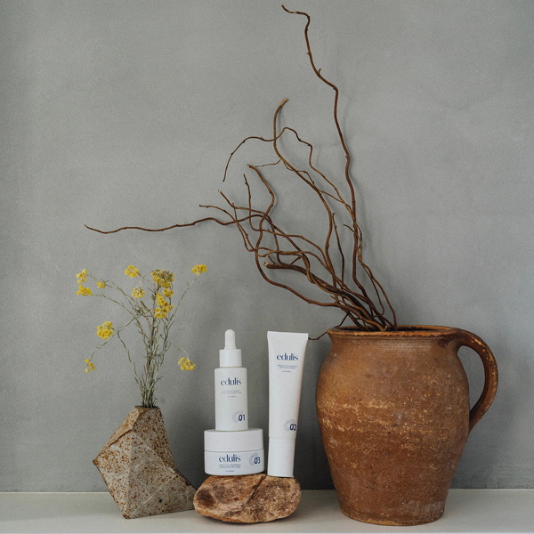 Currently Edulis has three products on offer — a serum, a day cream and a night cream — combining all the benefits of oyster extracts with those of ulva lactuca seaweed from Brittany, desert date palm oil, kokum butter and frankincense resin, all natural ingredients.