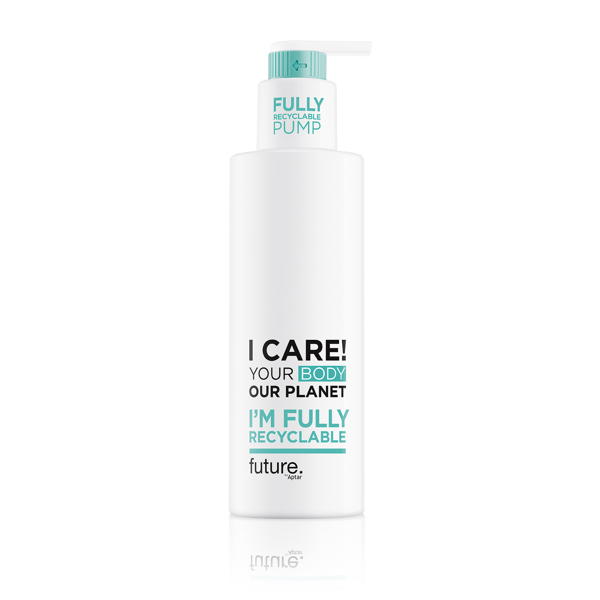 Concerning plastics, Aptar Beauty + Home presented Pure, a tube and cap both made of polypropylene (PP) for an entirely recyclable set, as well as Future, launched last May, the first single-material pump made of polyethylene (PE) for personal care markets.