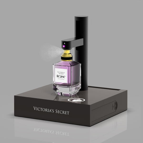 Dapy’s patented automatic tester delivers a dose of perfume directly from the bottle via a spray triggered by motion detection. The tester can be adjusted for all perfumes and bottles between 85 and 130 cm in height.