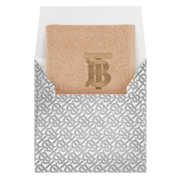 Manufactured in Europe, the 30x30 cm facial care towel is made of beige cotton, with a tone-on-tone embroidered logo. It is displayed in its silver mirror paper envelope, embossed with the tone-on-tone monogram and enhanced with the gold hot-stamped logo.