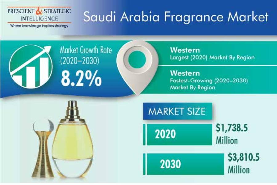 En Arabie saoudite, le marché des parfums devrait croître à un TCAC de 8,2% pour atteindre 3810,5 millions de dollars US en 2030, sur la base d’une valeur de 1738,5 millions de dollars US en 2020 [2].