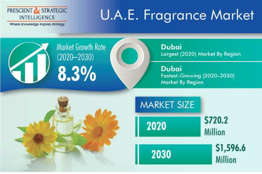 Le marché des parfums aux Émirats Arabes Unis se développe rapidement en raison de la hausse du revenu disponible. De plus, les investissements croissants en campagnes publicitaires, la croissance du marketing numérique et l’importance toujours plus forte des de la personne contribuent également à la croissance du marché. Estimé à 720,2 millions de dollars en 2020, le marché des parfums aux Émirats Arabes Unis devrait connaître un taux de croissance annuel de 8,3% (taux de croissance annuel composé) entre 2020 et 2030, selon P&S Intelligence [1].